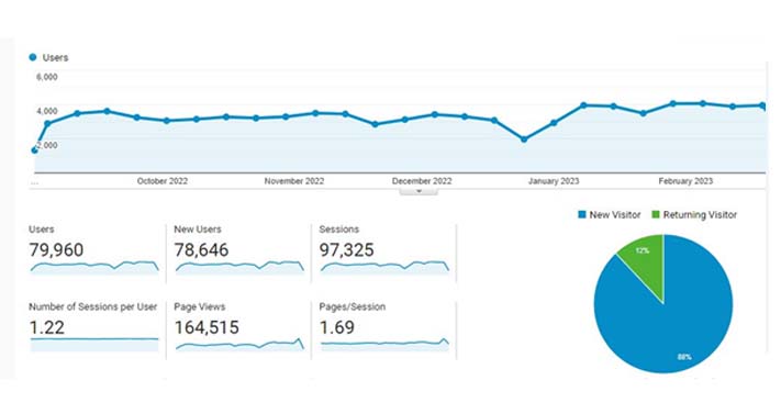 Achieved 75% New Users in 3 Months and 4 Keywords Ranked at Top 5 Positions on Google.