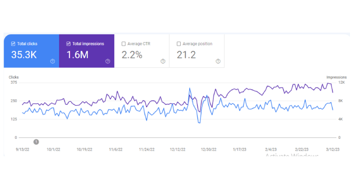 Delivered 1.6M Impressions & 35.3k Clicks in the Last 6 Months and Ranked 10 Keywords in the Top 10 Positions.