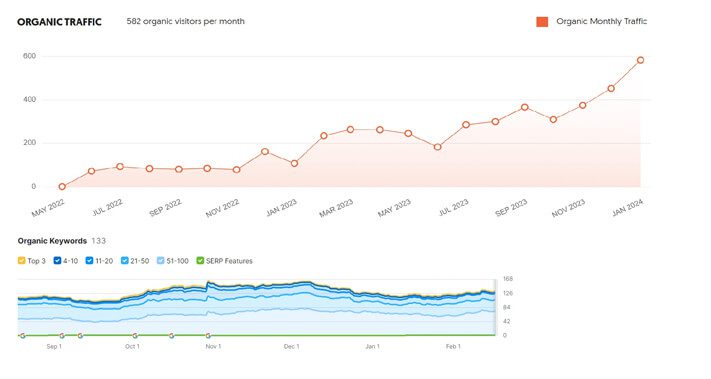 Gained 166% Increase in Organic Traffic and 20+ Keywords Ranked on 1st Page of Google.